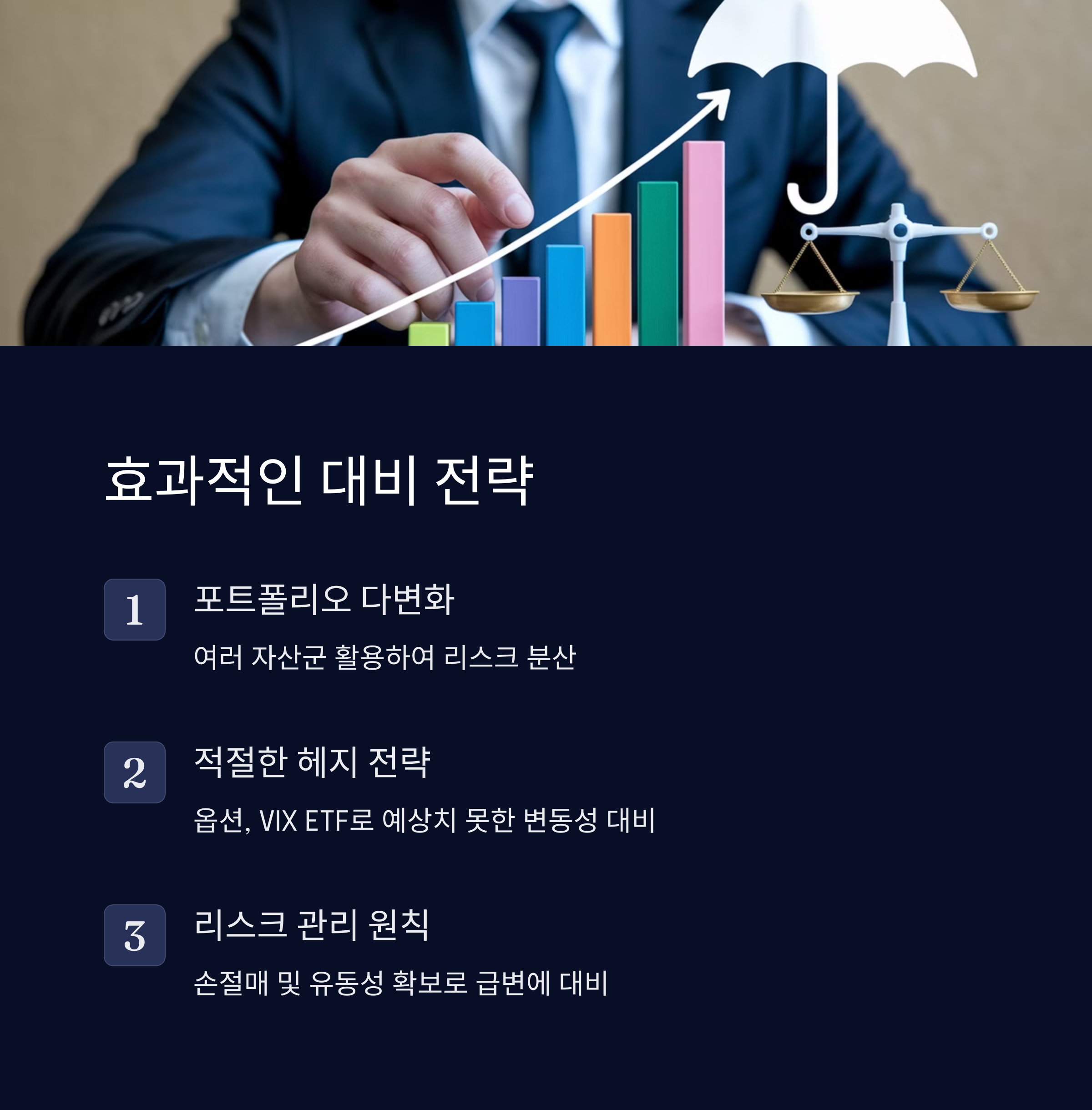 - 적절한 헤지 전략 활용: 옵션, VIX ETF 등을 이용해 예상치 못한 변동성에 대비