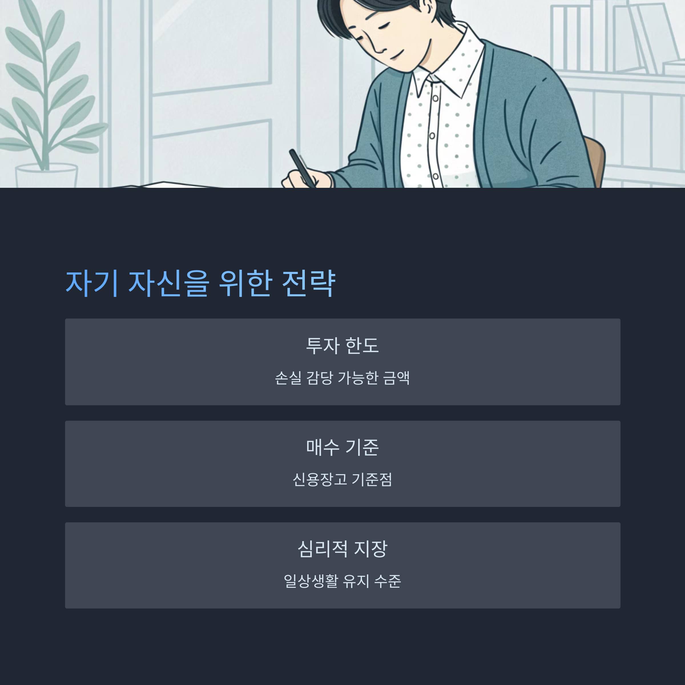 장기 투자에 있어서 전략은 숫자보다도 나의 ‘심리 방어선’이 되어야 합니다.