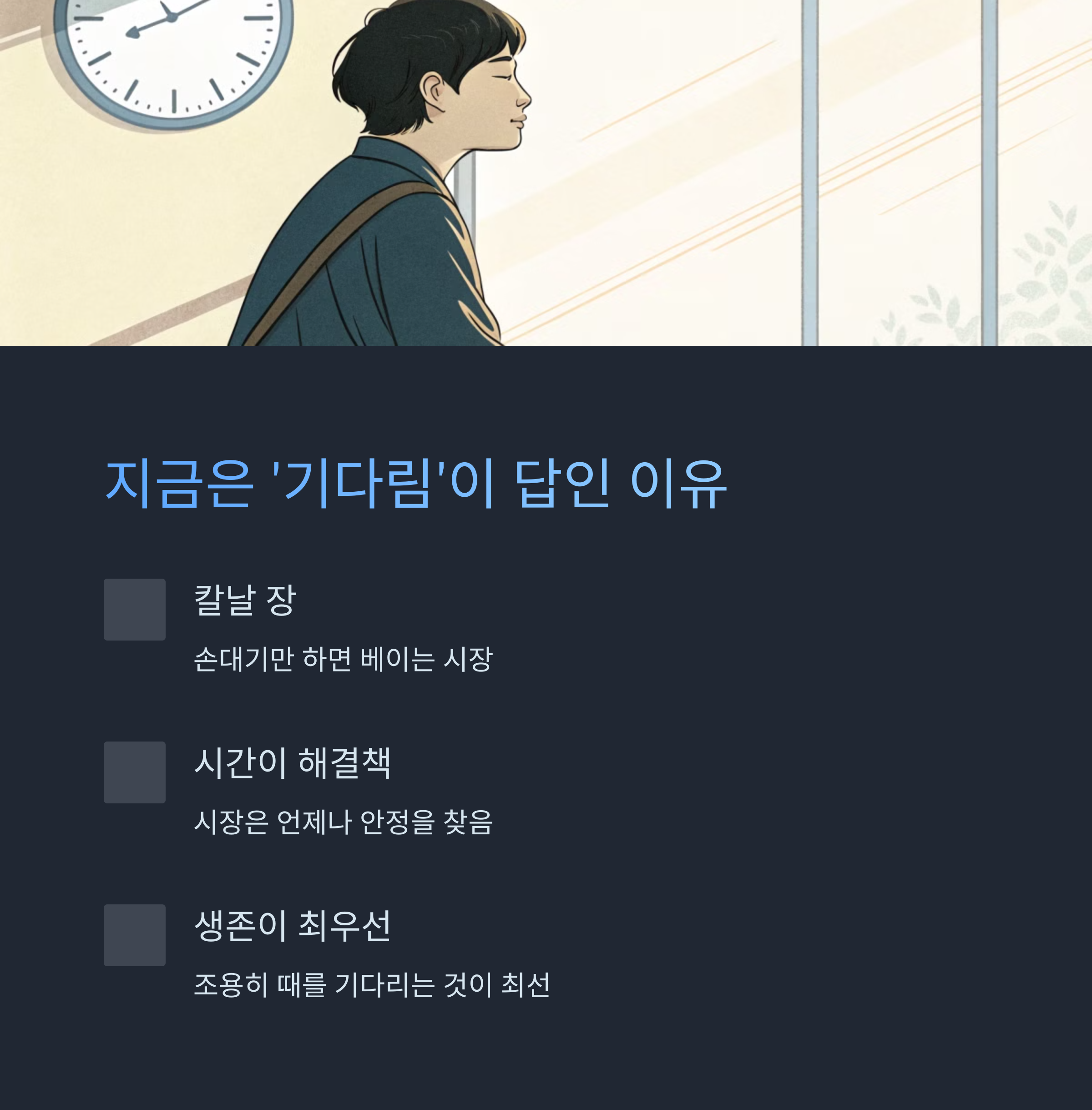 데이터와 자신만의 기준을 믿고, 그 기준을 지키며 버티는 것. 그것이 지금 우리가 할 수 있는 가장 현명한 선택입니다.
