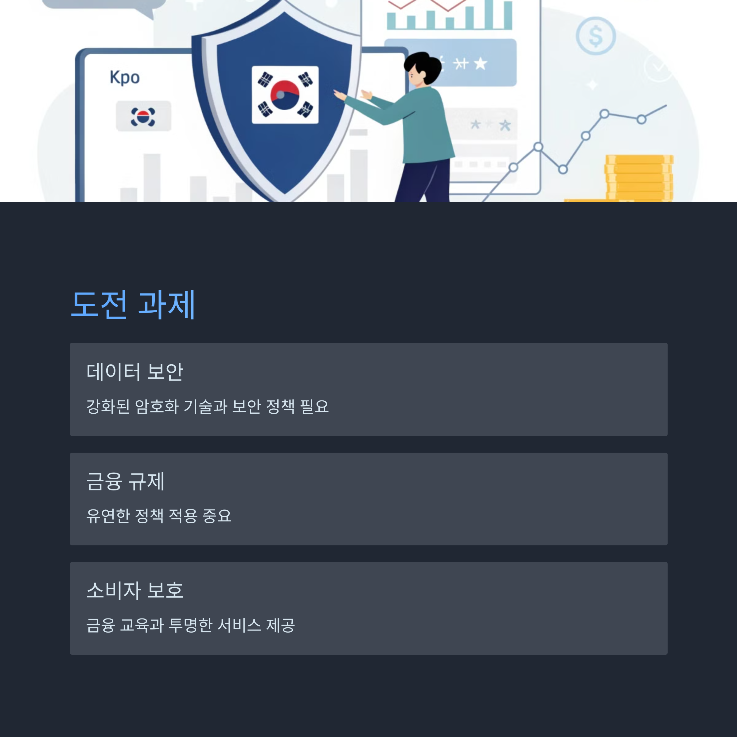 핀테크 산업이 발전하면서도 해결해야 할 과제들도 있습니다.