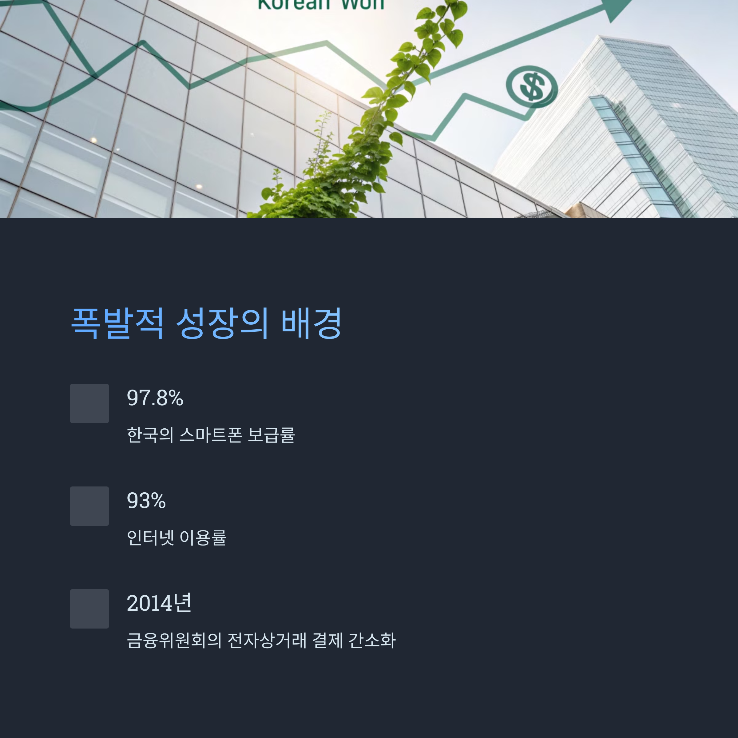 한국의 핀테크 산업이 빠르게 성장할 수 있었던 몇 가지 핵심 요인이 있습니다.