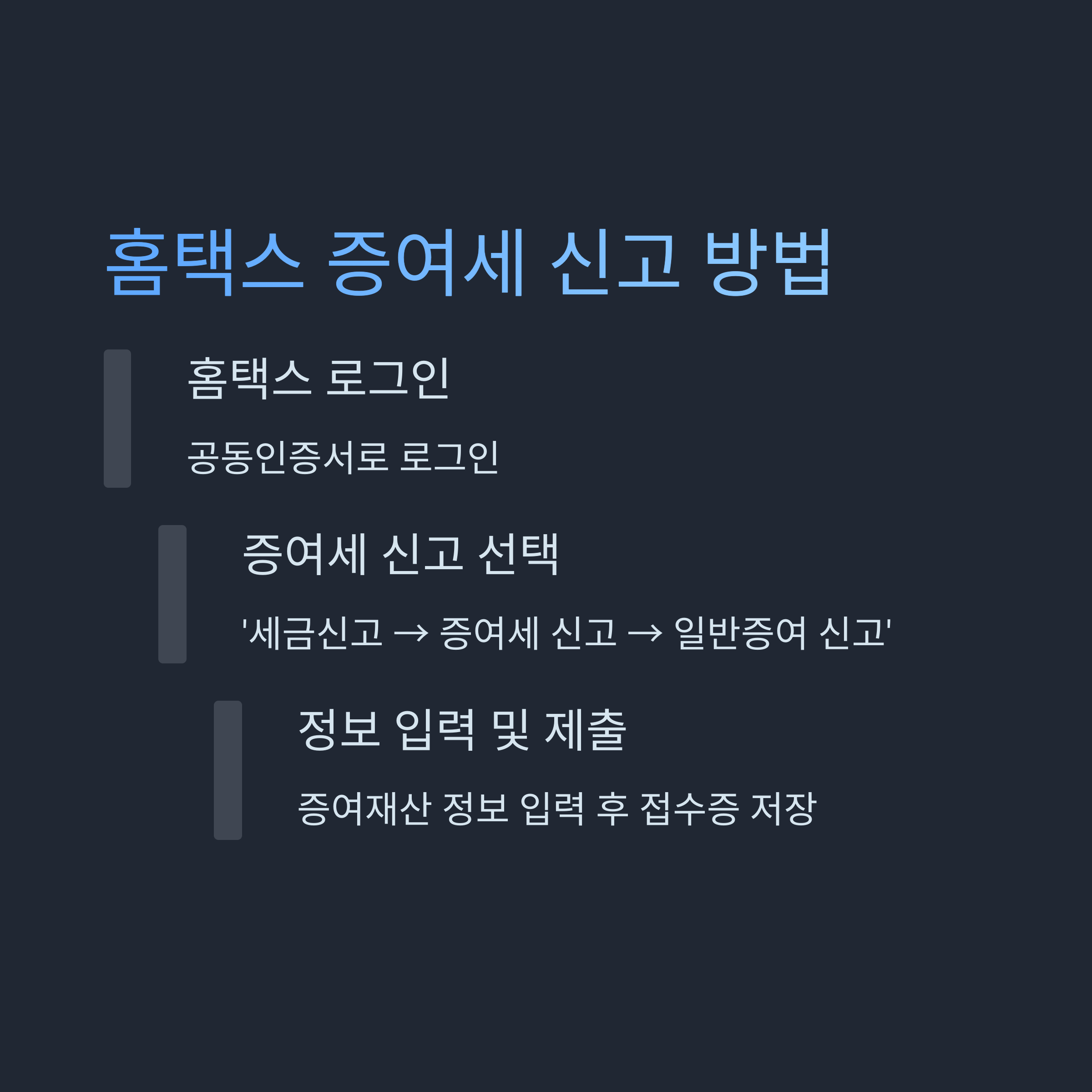 홈택스에서 해외주식 증여세를 신고하려면 다음 단계를 따르면 됩니다. 처음 해보는 분도 따라 하기 어렵지 않아요.