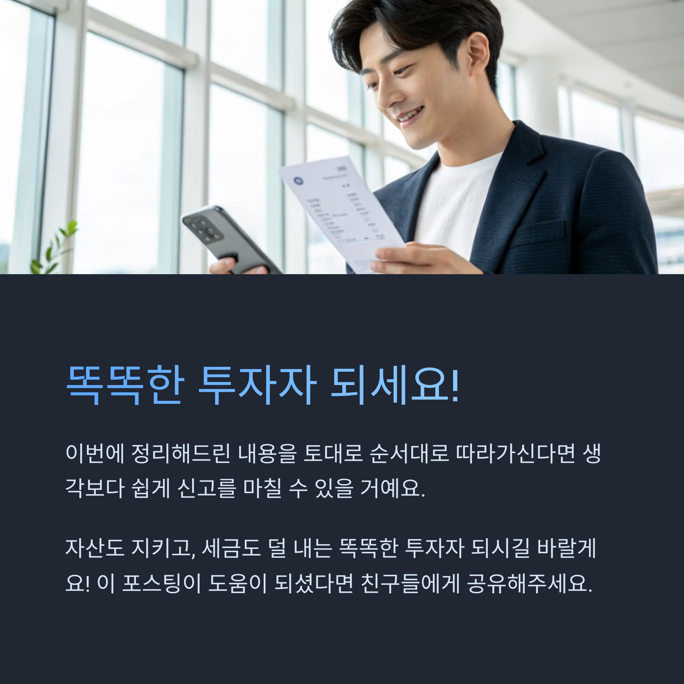 자산도 지키고, 세금도 덜 내는 똑똑한 투자자 되시길 바랄게요!