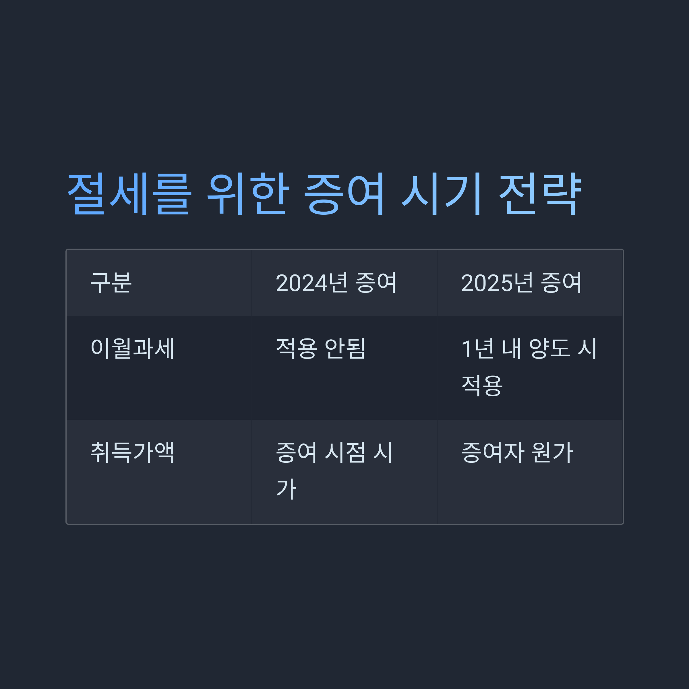 | 구분 | 2024년 증여 | 2025년 증여 |