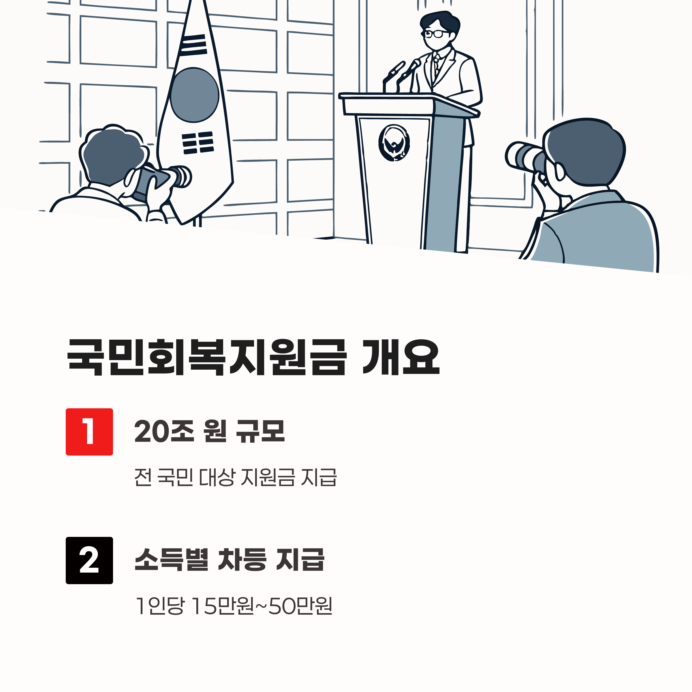 지급 대상은 국민 전체이지만, 지급액은 소득 수준에 따라 차등 적용되며, 1인당 최소 15만 원에서 최대 50만 원까지입니다.