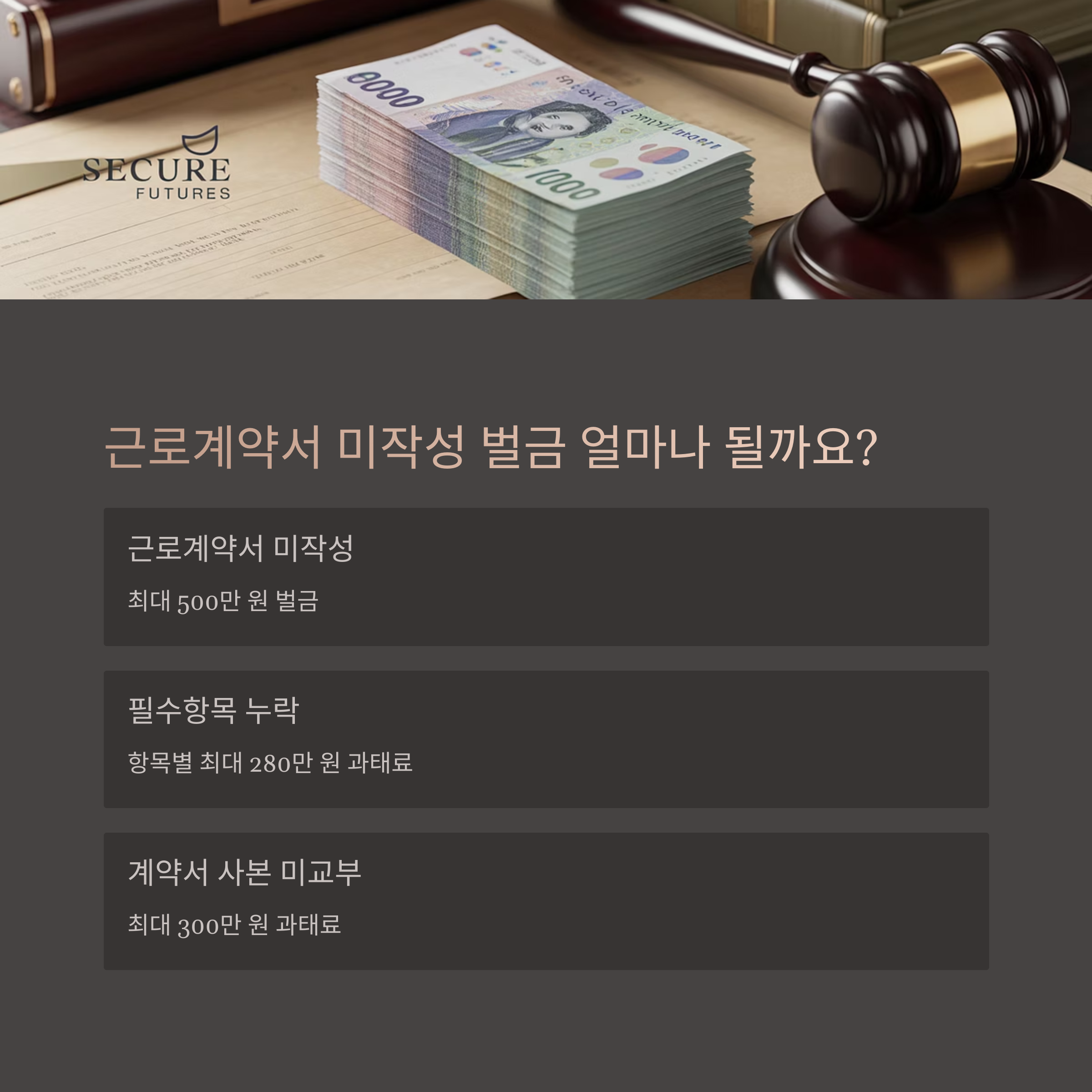 | 근로계약서 미작성 | 최대 500만 원 벌금 |
