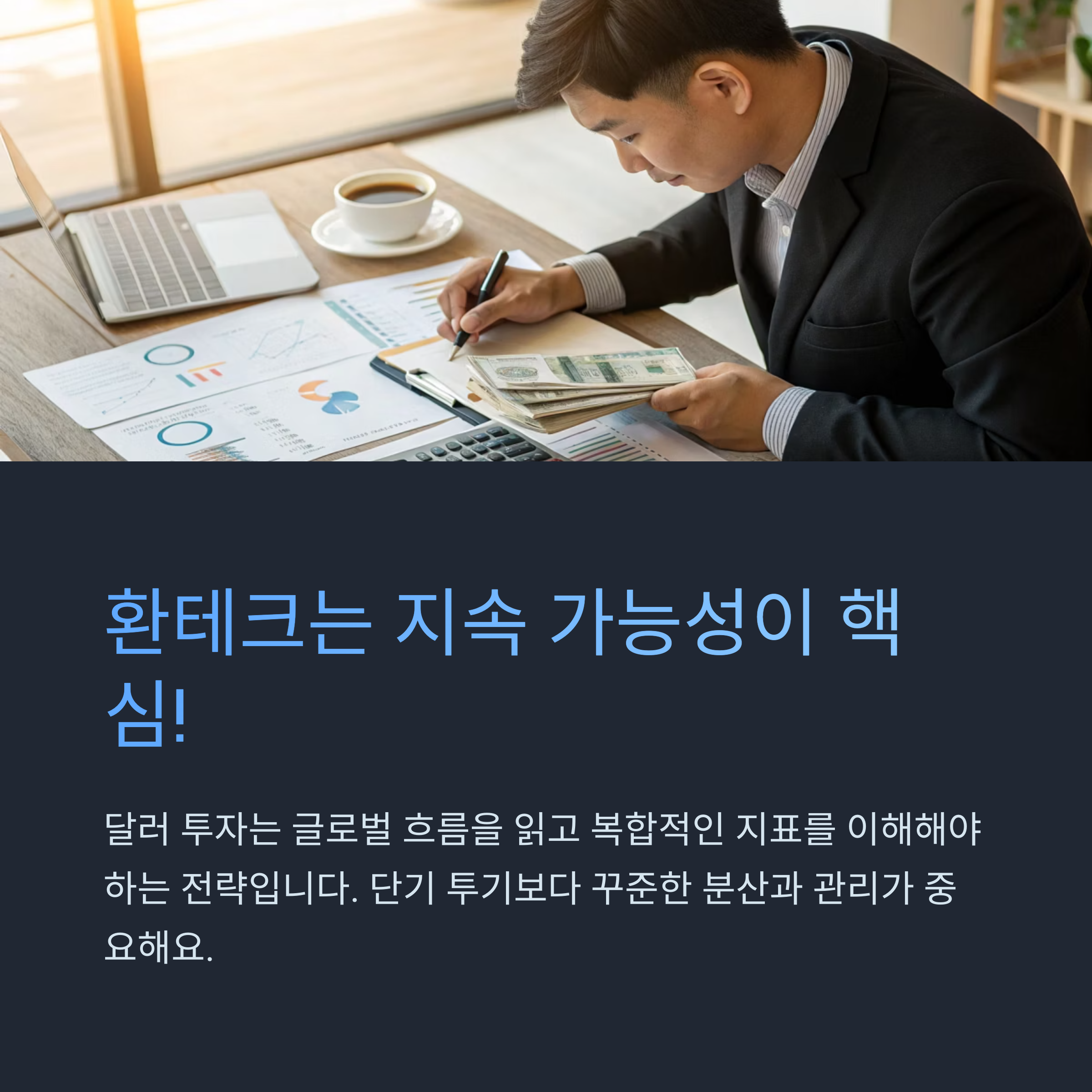 중요한 건 ‘타이밍’보다 ‘지속 가능성’입니다. 환테크는 단기 투기보다 꾸준한 분산과 관리가 핵심이니까요.