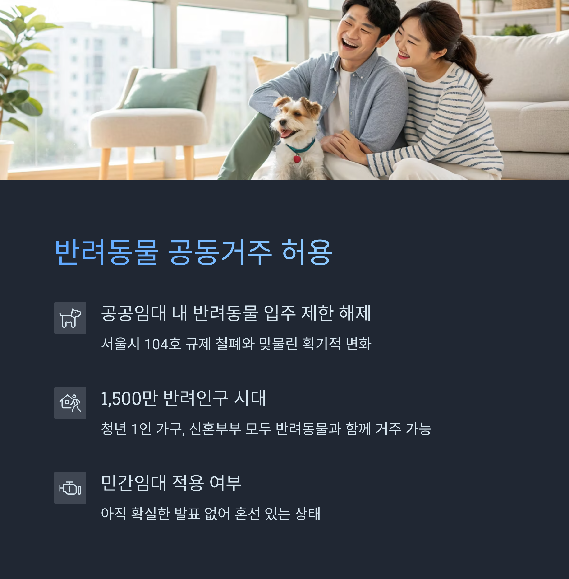 그중에서도 가장 큰 이슈는 바로 반려동물과의 공동거주 허용! 저도 이 소식 듣고 정말 깜짝 놀랐습니다.