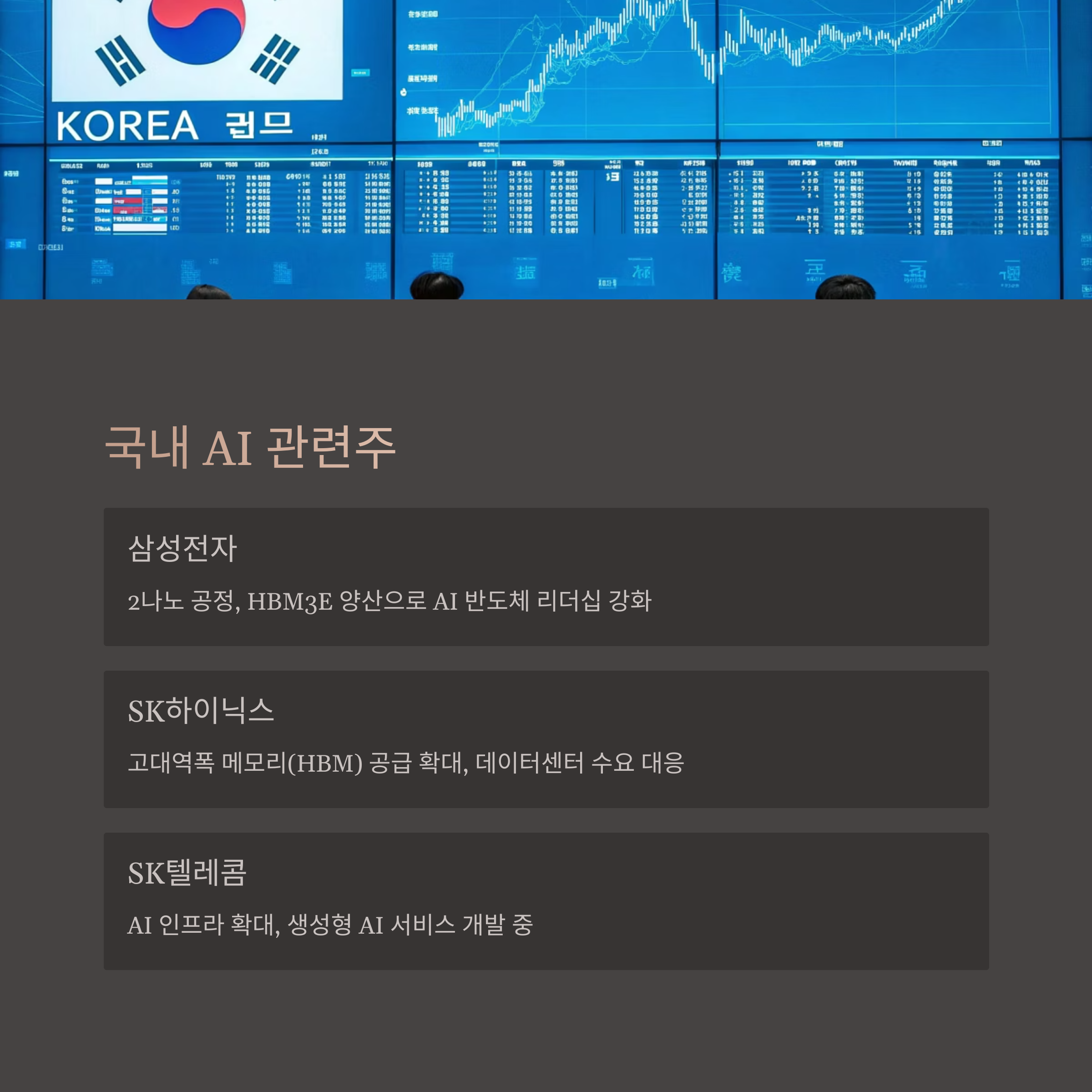 국내 시장에서도 AI 열풍은 뜨겁습니다. 특히 반도체 대장주들이 강한 모멘텀을 보이고 있죠.