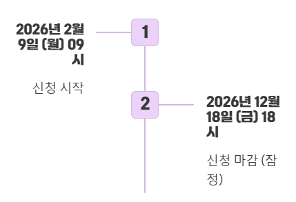 • 기간: 2026년 2월 9일(월) 09시 ~ (잠정) 2026년 12월 18일(금) 18시까지
