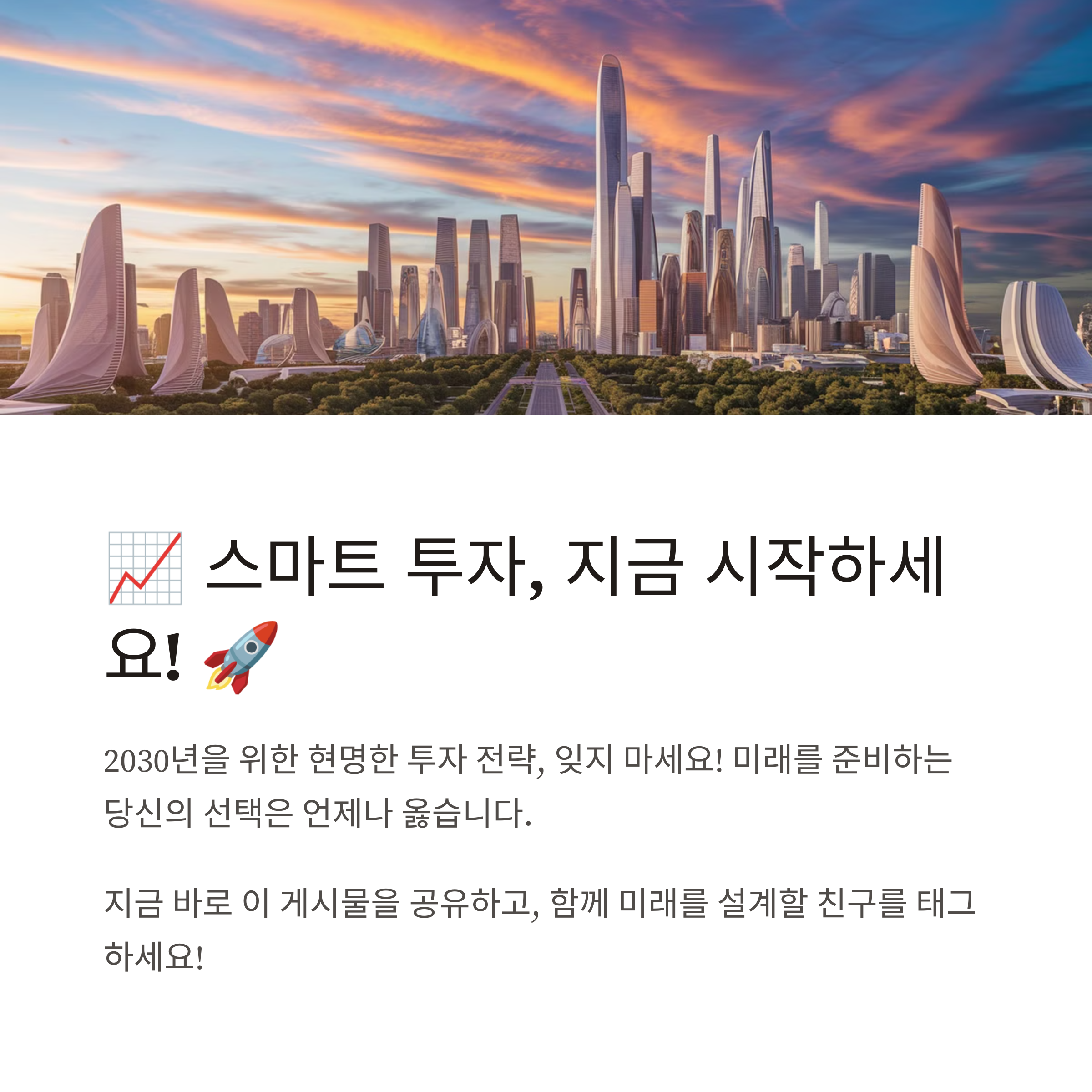 2030년을 대비한 여러분의 투자 포트폴리오는 어떻게 구성되어 있나요? 댓글로 의견을 나누어 보세요!