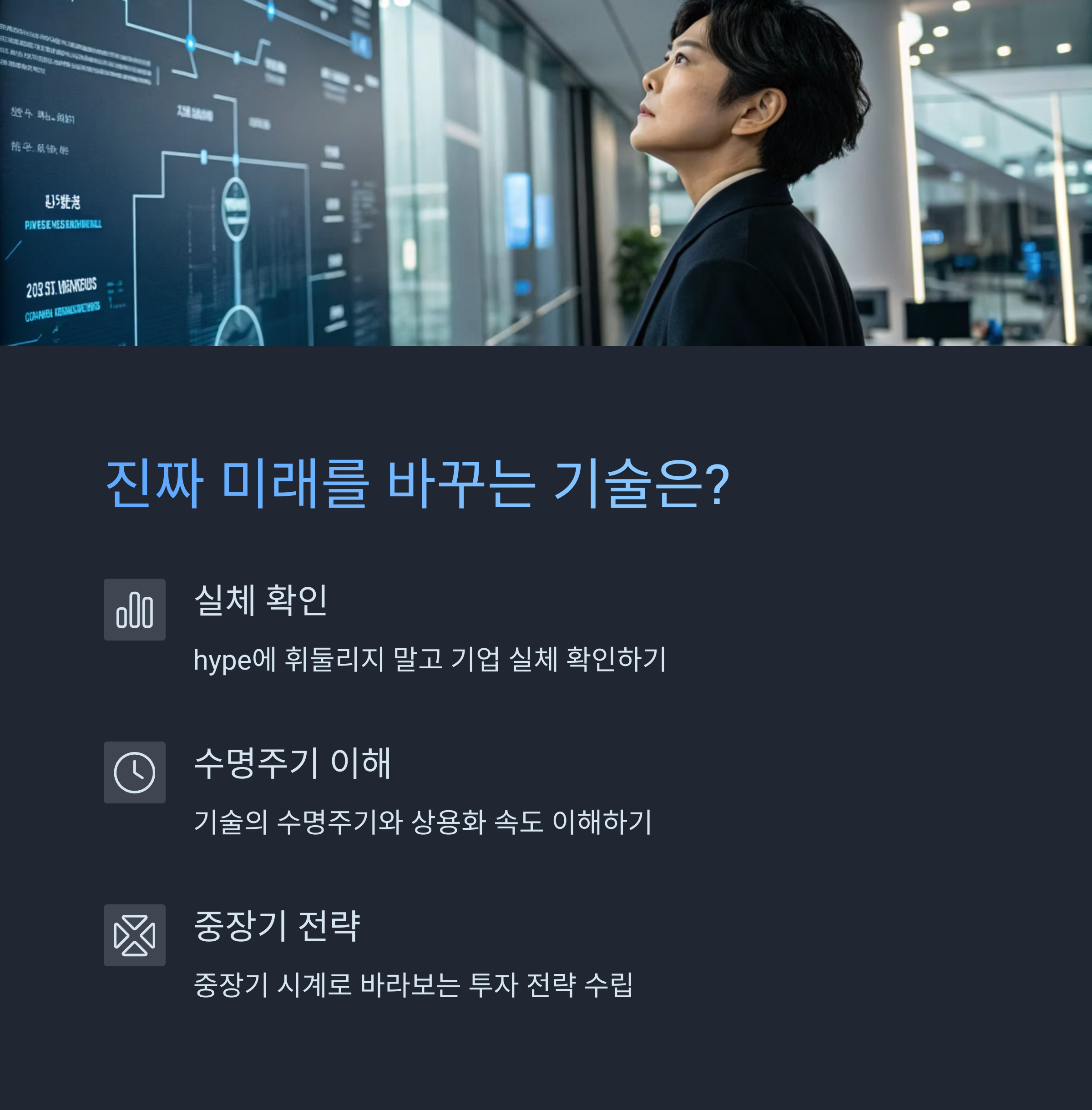 신규 기술 도입 직후보다, 실적이 수반되는 시점이 가장 좋습니다. 즉, hype 이후 진짜 매출이 나올 때! 현재는 그런 ‘전환기’에 해당하므로 분할 접근이 현명해요.