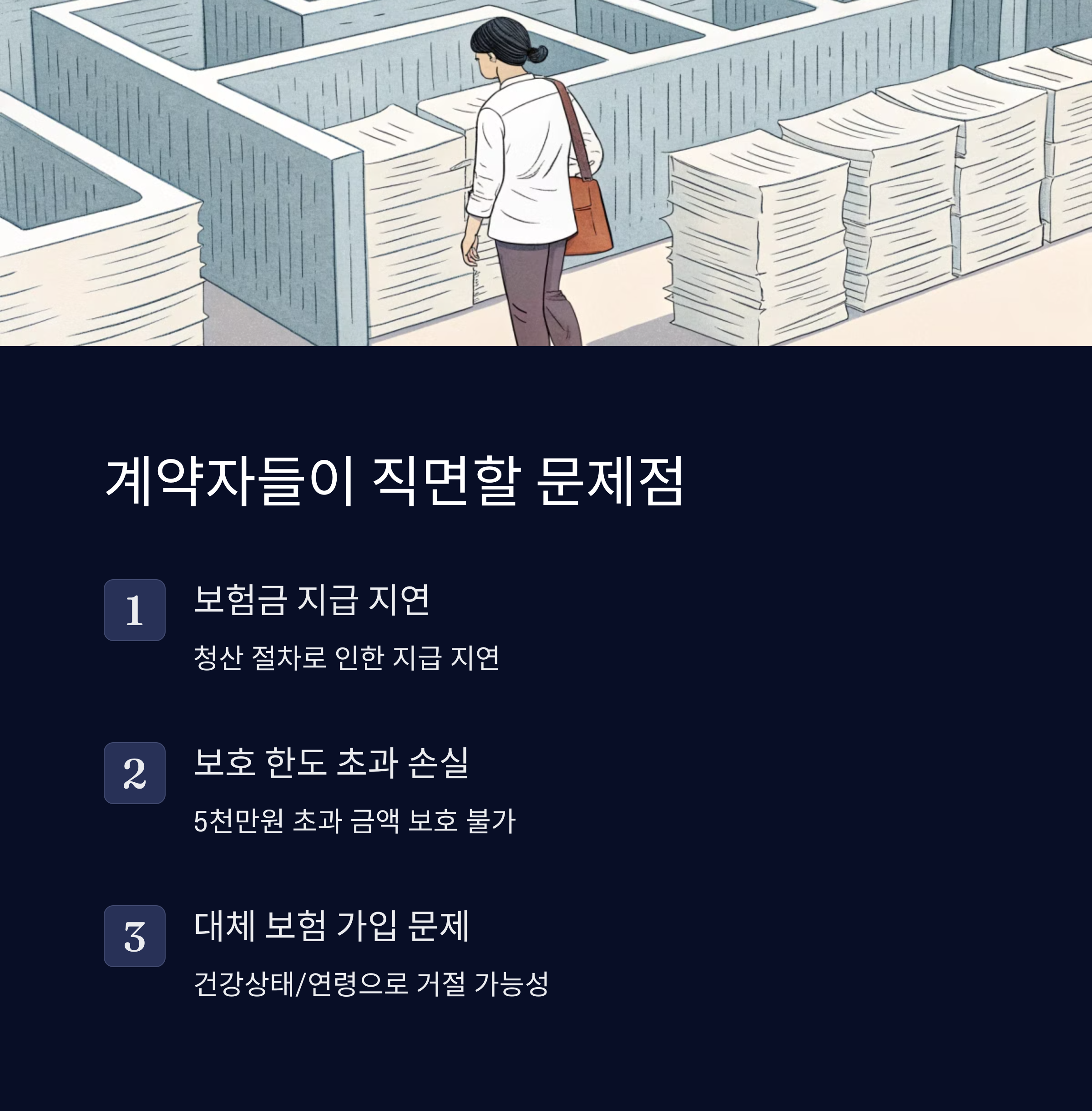특히, 예금자보호법에 따라 5천만 원까지만 보장되기 때문에 이 금액을 초과하는 계약자들은 상당한 손실을 입을 수 있습니다.