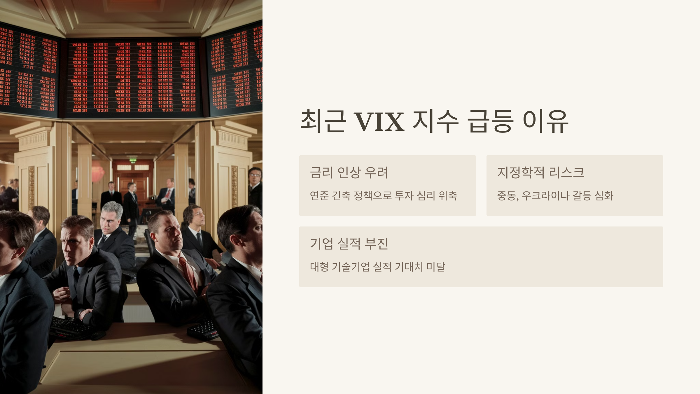 최근 VIX 지수가 급등한 이유는 여러 가지가 있습니다. 세계 경제의 불확실성이 커지고 있으며, 특히 거시경제 요인과 지정학적 리스크가 주요 원인으로 꼽힙니다.