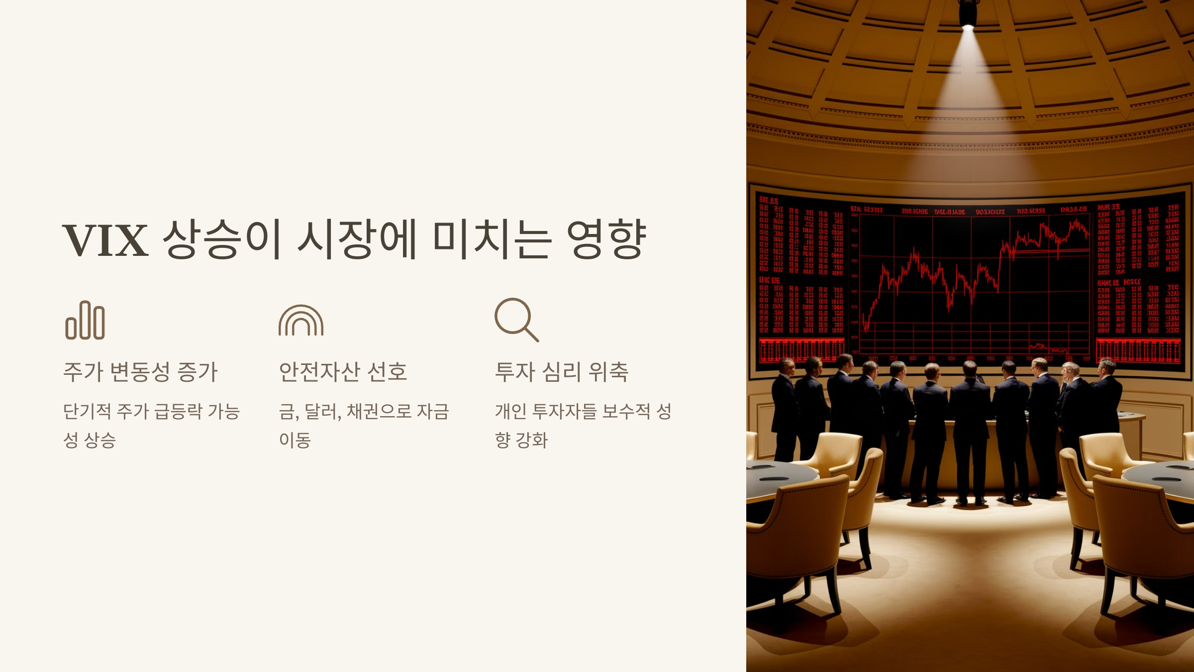 VIX 지수가 급등하면 단순한 숫자의 변화가 아니라 시장에 실질적인 영향을 미칩니다. 다음과 같은 변화들이 나타날 가능성이 높습니다.